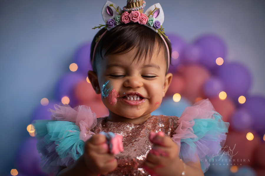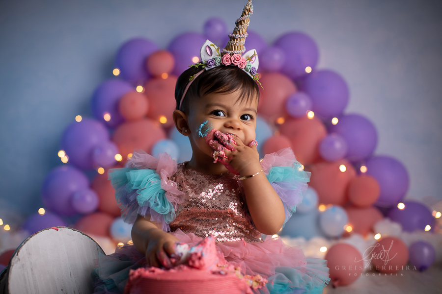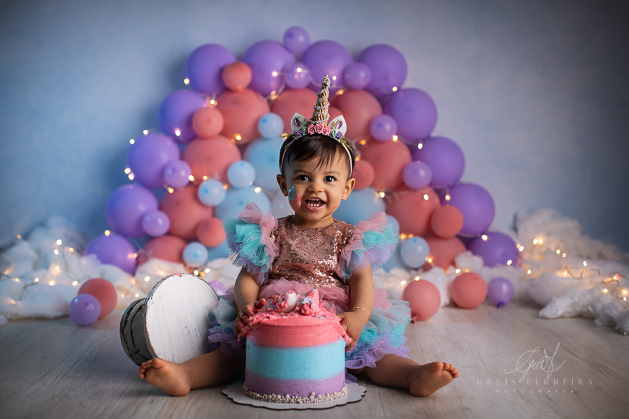 Smash the cake Unicórnio + Banho + Família