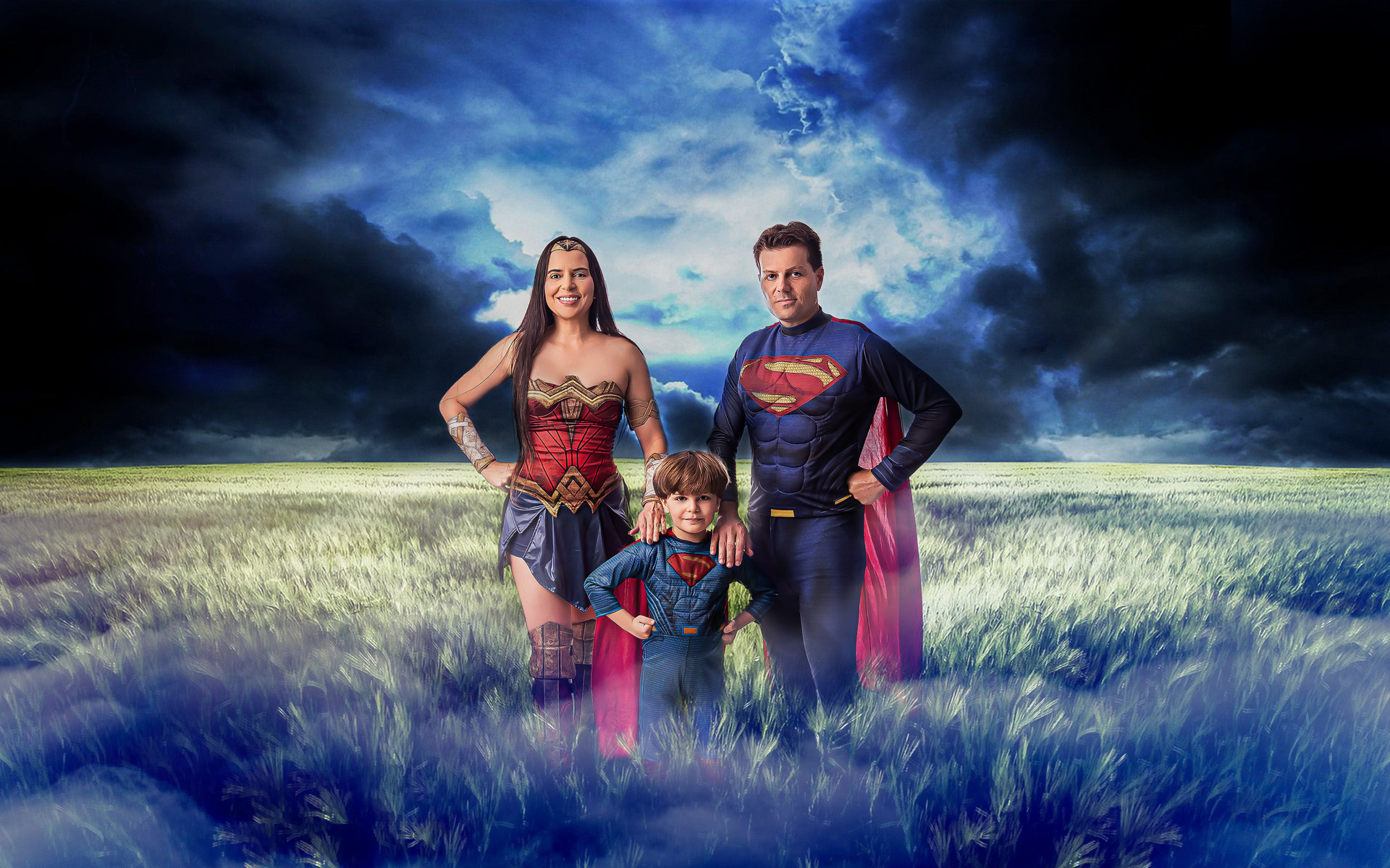 Um ensaio que pode fazer seu filho e sua família aparecerem em um cenário surreal como nas histórias em quadrinhos.