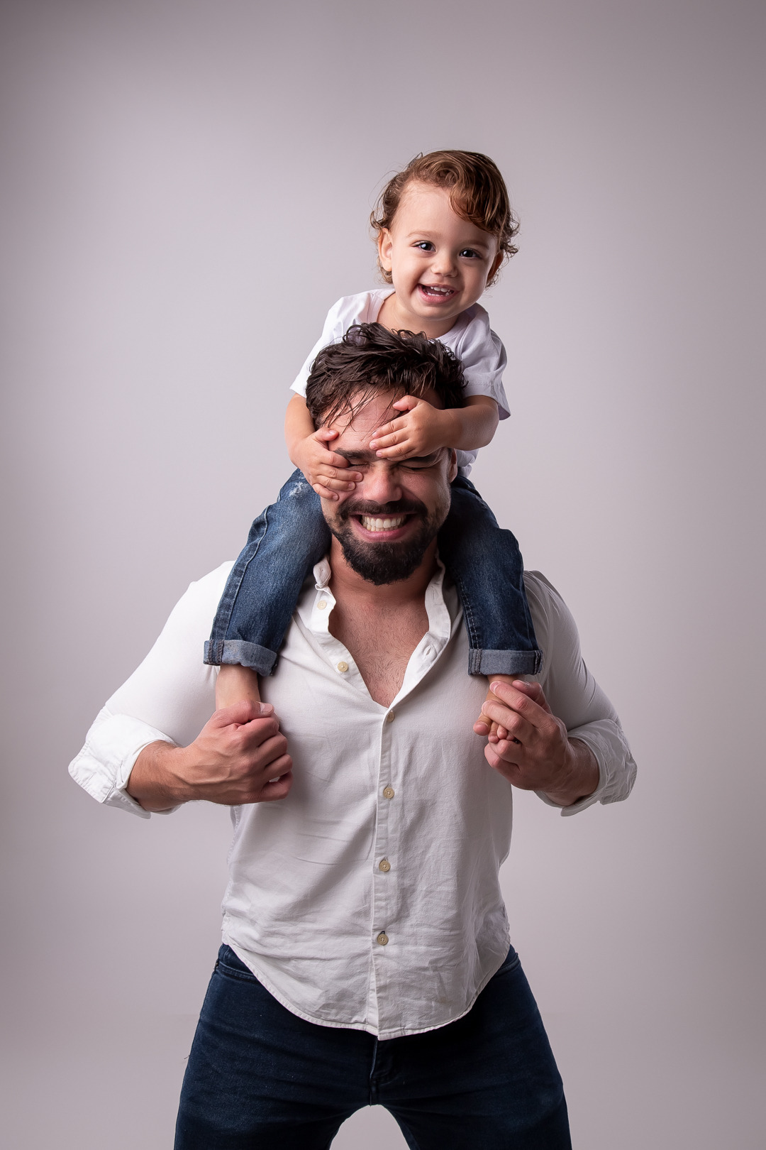 - Direção fotográfica profissional para capturar a conexão genuína entre pai e filho(a).
