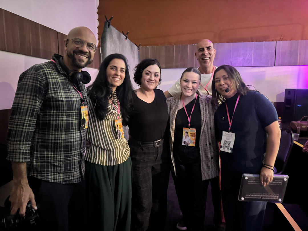 Foi mágico. Mal a primeira imagem surgiu no telão, e a plateia já se derretia em um coro coletivo de “Aaaaahhhh” e “Oinnnnn”. Cada click parecia carregar não apenas uma foto, mas uma explosão de ternura que reverberava pelo auditório. Do palco, eu podia sentir a vibração da plateia, e dos bastidores vinham olhares marejados das famílias, emocionadas por verem seus bebês estreando como verdadeiros protagonistas.