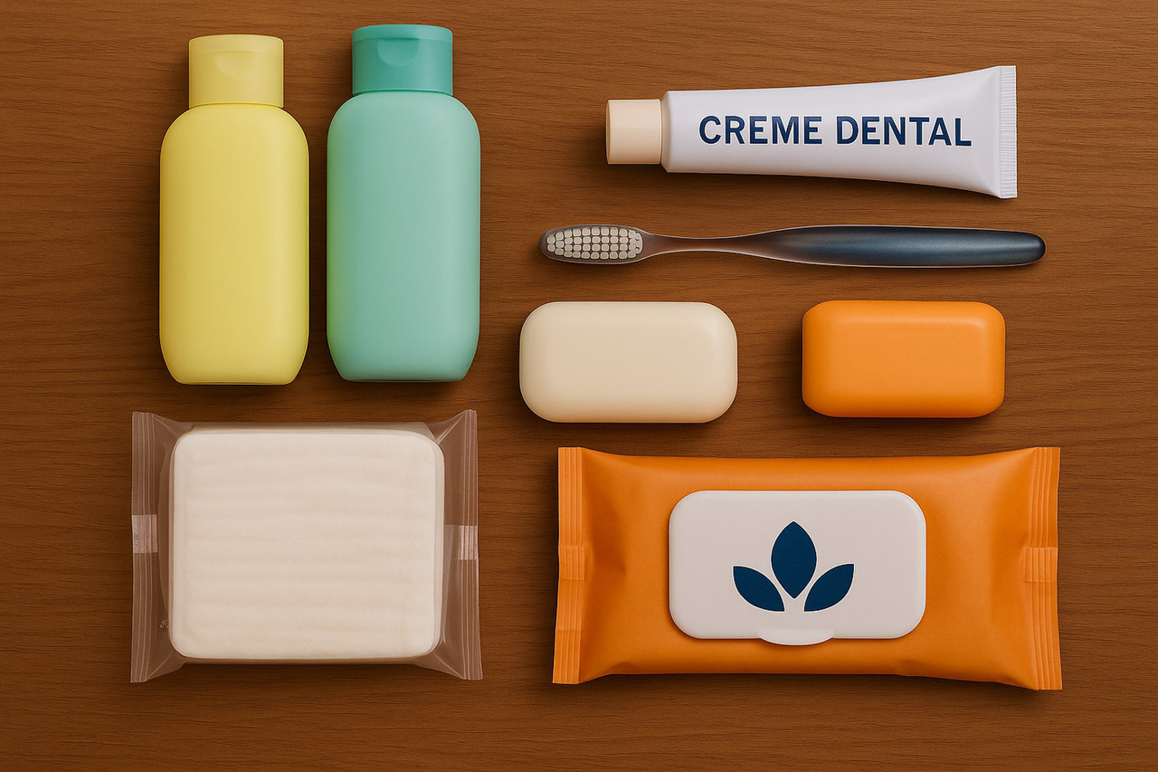 Não esqueça de levar itens de higiene pessoal, como escova de dentes, creme dental, xampu, condicionador, sabonete, absorventes e lenços umedecidos.