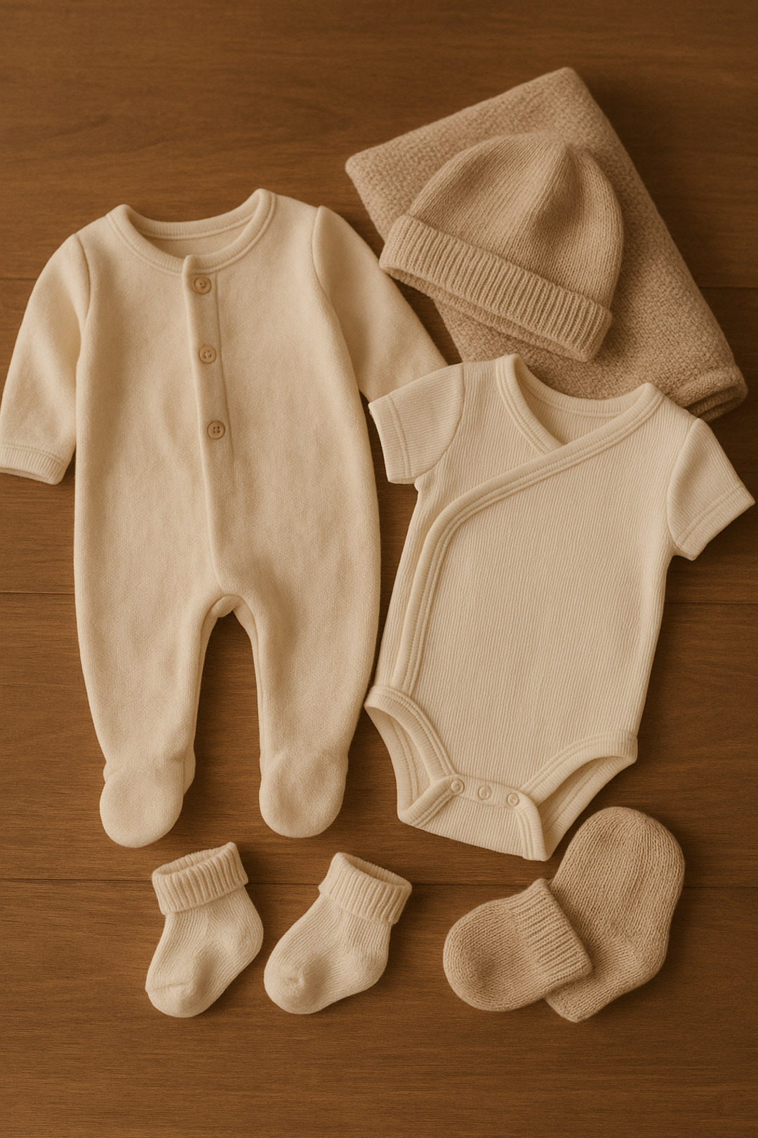 Leve roupas confortáveis para o bebê, como macacões, bodies, meias, toucas e mantas.