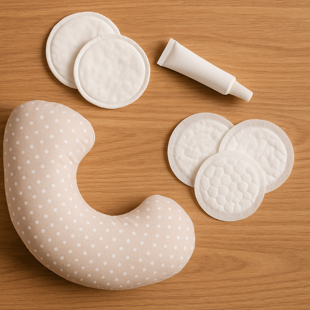 Se pretende amamentar, leve também itens como absorventes de seio, pomada para prevenir fissuras e uma almofada de amamentação.